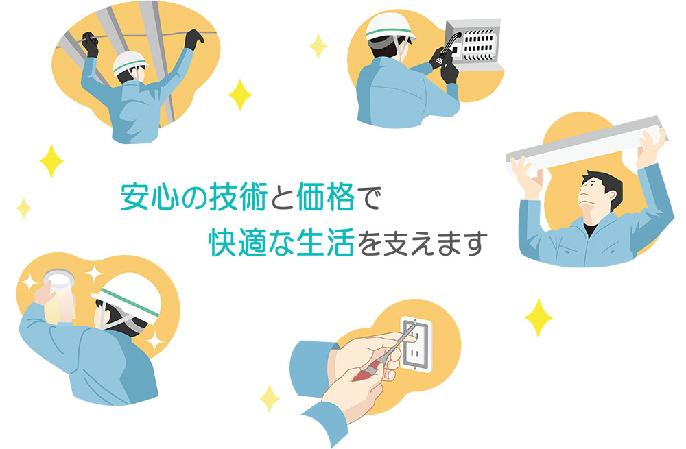 弊社スタッフは、経験豊富な電気工事士有資格者が在籍しております。多くの経験と培ってきた技術で、お客様のご要望にも柔軟にご対応し、安心・安全の電気工事をご提供して参ります。