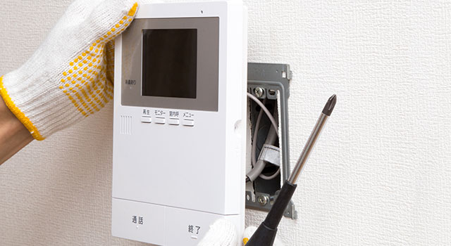 近年では防犯対策ため、防犯カメラやテレビモニター付きのインターホンなどが多く設置されています。モニター付きのインターホンに付け替えたいなどのご依頼もお任せください。
