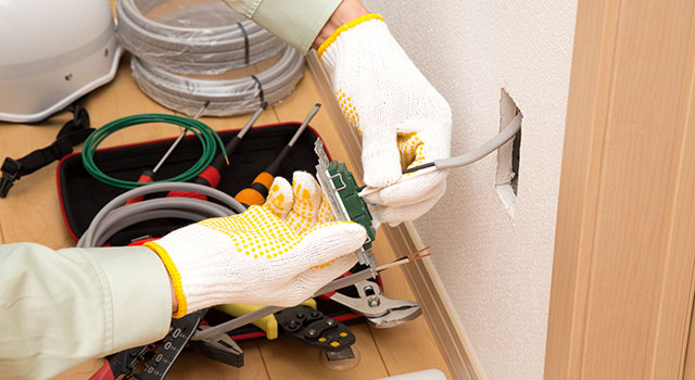 お約束の日時にお伺いして工事を開始します。内容によっては、一時的に電気が使用できない場合がございます。